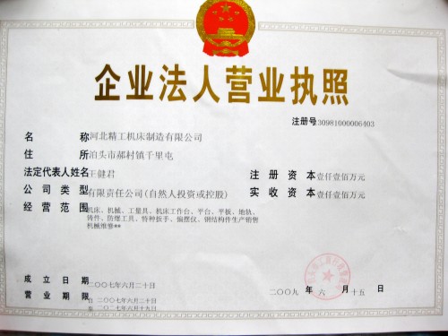 公司名稱:河北精工機床制造有限公司 公司地址:河北省泊頭市千里屯工業(yè)區(qū)138號 電話:0317-4580234 傳真:0317-4580235 手機:13932735398 網址: